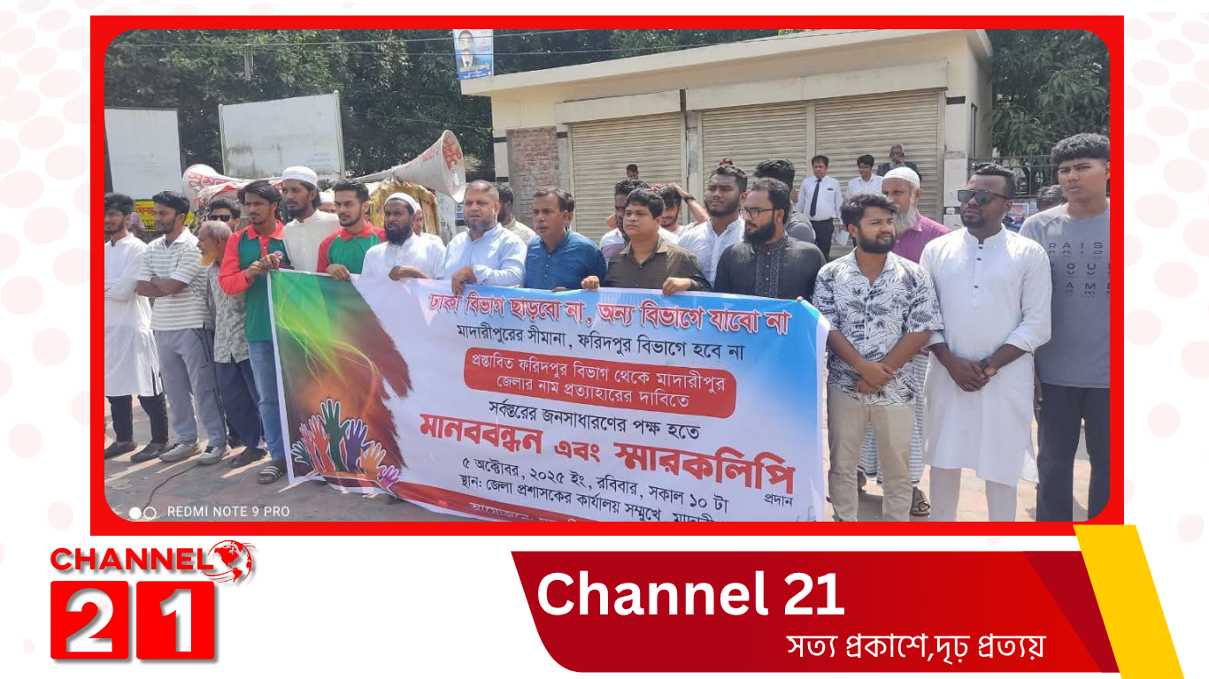 ঢাকা বিভাগ না ছাড়ার দাবিতে মাদারীপুরে মানববন্ধন অনুষ্ঠিত